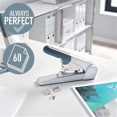 Tűzőgép, nagyteljesítményű, 25/10, 60 lap, LEITZ “5552”, ezüst