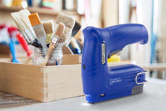 Tűzőpisztoly, vezeték nélküli, elektromos, USB, RAPESCO Germ-Savvy “T12-USB”, kék