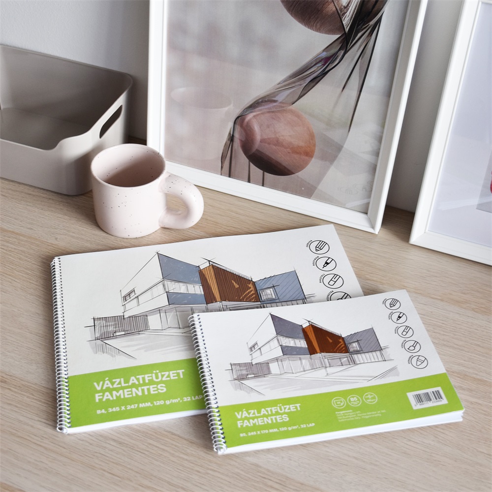 Rajz, festészet és iskolai használatra. Mivel a vázlatfüzet spirálos kialakítású és a lapok egymáson vannak, így vizes festésnél különös figyelmet igényel. 32 lapos Katalóguskód: 34506