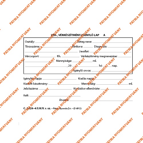 | Név | Vér, vérkészítmény igénylőlap 50×2 lapos tömb A/6 |
